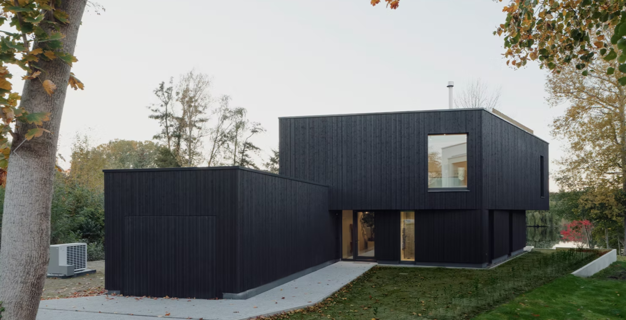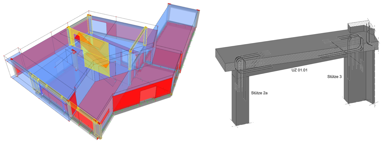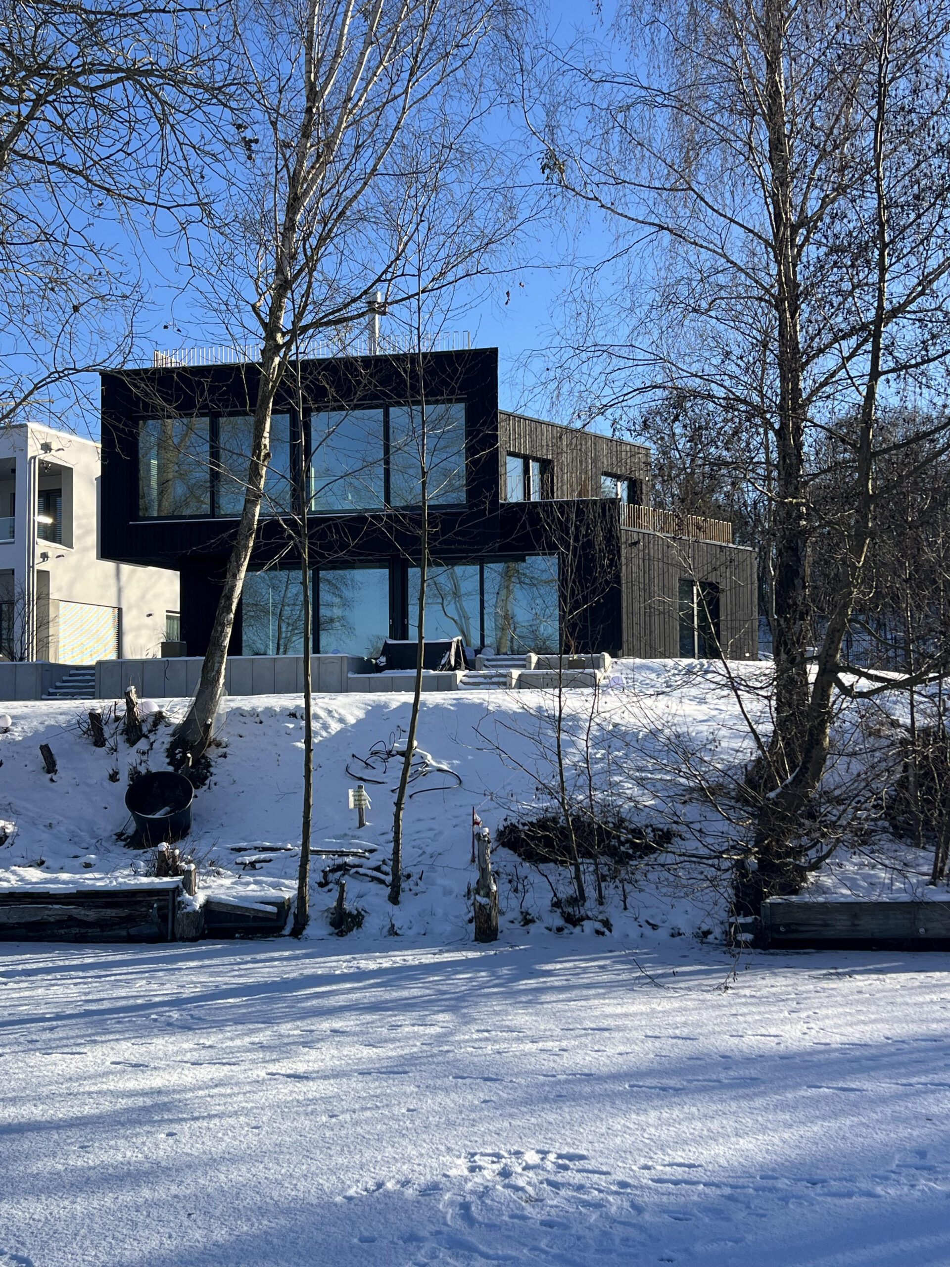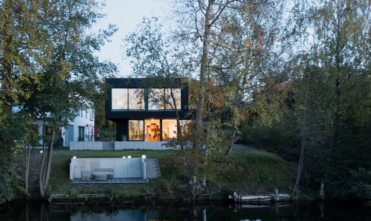 LaufsED provided full structural engineering support to the architects for the design and realization of a new lakefront residence just 45 minutes outside of Berlin. The two-story, 240 m² home is designed without a basement and features a robust reinforced concrete structure combined with KS masonry walls. Due to the unique 3D form of the house the global lateral stability relies on true moment frame. The structural system was carefully coordinated to balance stability with the architectural vision for a modern, light-filled lake house. Photos below courtesy of Deeken Architekten.
