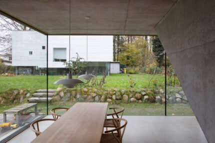 LaufsED provided comprehensive structural engineering services for this innovative 260 m² residence in Hamburg. The design features striking column-free glass walls and dramatic cantilevered concrete surfaces, showcasing exposed concrete as both structure and finish. A double-shell concrete construction with integrated core insulation ensures excellent energy efficiency while maintaining a clean, minimalist aesthetic. The result is a highly insulated, modern home that combines architectural ambition with structural precision.